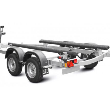 - Усиленная оцинкованная стальная рама выполнена из замкнутого профиля, имеет большой запас прочности и позволяет уберечь жгут электропроводки от внешних повреждений по все длине прицепа. Изогнутая конструкция поперечин рамы обеспечивает максимально низкую посадку судна, что снижает центр тяжести и повышает устойчивость прицепа во время движения.