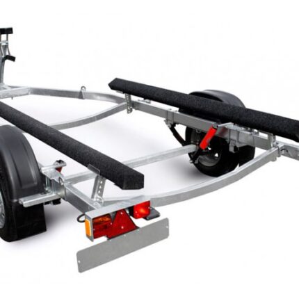 - Усиленная оцинкованная стальная рама выполнена из замкнутого профиля, имеет большой запас прочности и позволяет уберечь жгут электропроводки от внешних повреждений по все длине прицепа. Изогнутая конструкция поперечин рамы обеспечивает максимально низкую посадку судна, что снижает центр тяжести и повышает устойчивость прицепа во время движения.