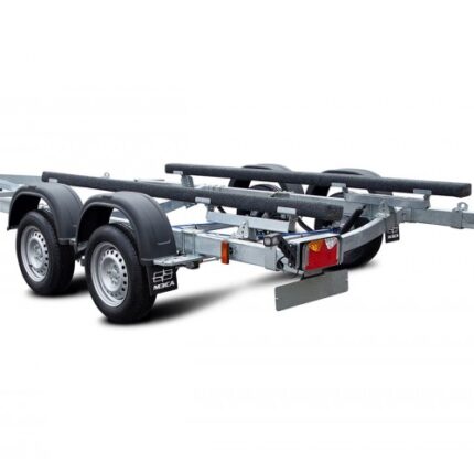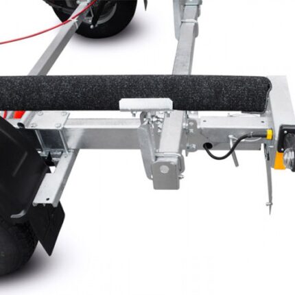 - Усиленная оцинкованная стальная рама выполнена из замкнутого профиля, имеет большой запас прочности и позволяет уберечь жгут электропроводки от внешних повреждений по все длине прицепа. Изогнутая конструкция поперечин рамы обеспечивает максимально низкую посадку судна, что снижает центр тяжести и повышает устойчивость прицепа во время движения.