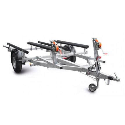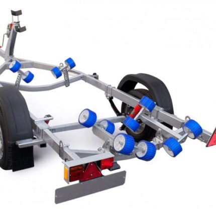 - Роликовые опоры обеспечивают удобный спуск судна на воду и его подъём на сложных, необорудованных участках берега, где нет возможности заезда прицепа на достаточную глубину. Четыре роликовых модуля, с четырьмя роликами на каждом, могут быть установлены в любой точке поперечины рамы, их оцинкованный кронштейн имеет саморегулируемый угол наклона, а каждая пара роликов самостоятельно подстраивается под обводы судна. Такая конструкция облегчает центрирование и обеспечивает удобную поддержку судна и при его загрузке и выгрузке под большим углом. Вспомогательный килевой ролик на задней поперечине обеспечивает свободное скольжение киля при подъёме судна на прицеп.