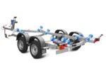- Передвижной колесный ход позволяет отрегулировать расположение оси и установить её под центром тяжести перевозимого судна. Правильное распределение нагрузки на прицепе обеспечивает безопасность перевозок, позволяет избежать превышения допустимой нагрузки на шар фаркопа, а также запрокидывание прицепа назад при перевозке судна с мотором.