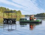 Плавающий прицеп TINGER сделан из легкого, высокопрочного и ударостойкого композитного материала – полиэтилена низкого давления HDPE, который не гниет и не ржавеет. При этом цена прицепа для вездехода с пластиковым корпусом ниже стоимости классического металлического прицепа. Но, следует учитывать, что с нашим решением вы не сможете передвигаться по дорогам общего пользование. Поэтому если решите купить пластиковый прицеп, имейте это ввиду.