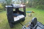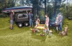 На деле прицеп Т – это настоящая «рабочая лошадка», способная перевезти до 300 кг груза. Кроме того, в прицепе могут разместиться до 8 человек. В случае необходимости он превращается в полноценную трехместную палатку. Зимой вы можете установить на него лыжный модуль, а в условиях жесткой непогоды — непродуваемый и водонепроницаемый тент.