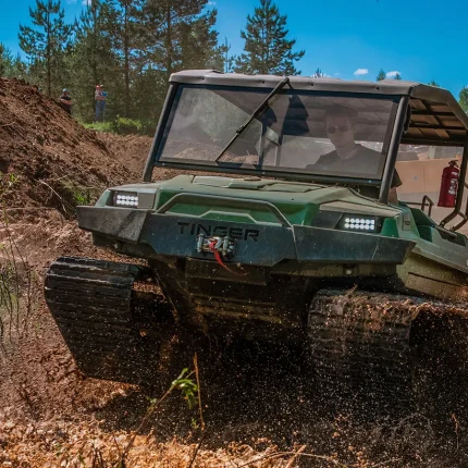 Переломка TINGER способна преодолеть все виды бездорожья. Её можно использовать круглый год, а рабочие температуры техники от -30° C до +30° C. Мы уже поучаствовали в битве вездеходов и заняли первое место в одной из категории. Если вы внимательно посмотрите видео с битвы, то увидите, что наша переломка с лёгкостью проходила те участки, где другие вездеходы испытывали проблемы.