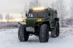 Одной из главных особенностей плавающих болотоходов Север является способность преодолевать серьезные водные препятствия. Благодаря шинам с регулируемым давлением вездеход беспрепятственно гребет в стоячей воде и болотах, без опаски выходит на весенний лед. При этом конструкция корпуса устроена так, что ни один из жизненно важных элементов колесного вездехода не контактирует с влагой, а сбалансированная кабина гарантирует: даже с полной загрузкой в несколько человек автомобиль не перевернется в процессе переправы. Такие возможности значительно расширяют зоны применения нашей разработки: от банального сокращения вашего маршрута в несколько раз до экстремальной помощи менее удачливой технике